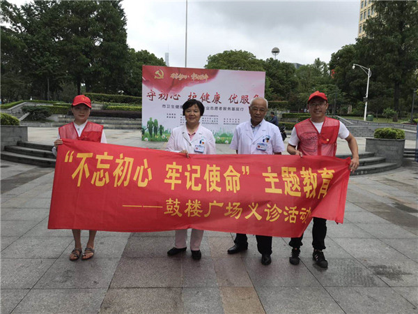 为庆祝中国共产党建党九十八周年,将“不忘初心牢记使命”教育实践落实到具体行动中,6月29日,我院3名党员眼科专家及医护人员参加了由市委组织部、市卫健委组织的,联合多家三级医疗机构,走进南京鼓楼广场,为广大市民开展义诊服务活动。当天上午共义诊近百名,发放近视宣传册和老年性眼病宣传册140余份,受到市民的欢迎。