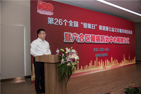 启动仪式上,王长青书记为“六合区眼病防治中心”揭牌,区卫健委主任郑强、南医大眼科医院院长蒋沁为六合区18家眼病专科联盟单位授牌,参会领导共同启动第26个全国“爱眼日”眼健康公益义诊服务项目。“六合区眼病防治中心”的成立、眼病专科联盟体系的建立,必将助力六合区域眼病防治有效开展。