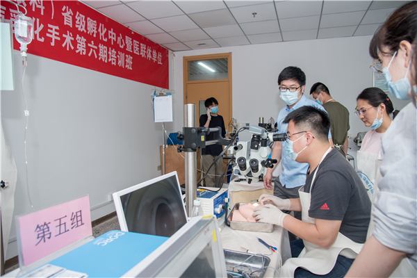 超声乳化手术以其切口小、痛苦小、手术时间短、恢复快、理想,深受患者欢迎。然而此项技术,对医生操作技巧、实操经验等要求高,基层医院眼科医生白内障超声乳化手术普及率并不高,基层医生学习的愿望很强烈,为了解决这一问题,在省卫健委大力支持下,医院适时举办培训班,到目前为止,共举办了6期,培训学员100多名,培训后,目前,有 8个基层单位新开展了白内障超声乳化手术,深得基层的肯定和欢迎.