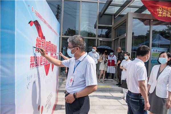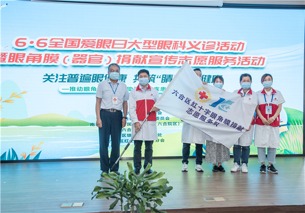 为“六合区红十字眼角膜捐献志愿服务队”授旗