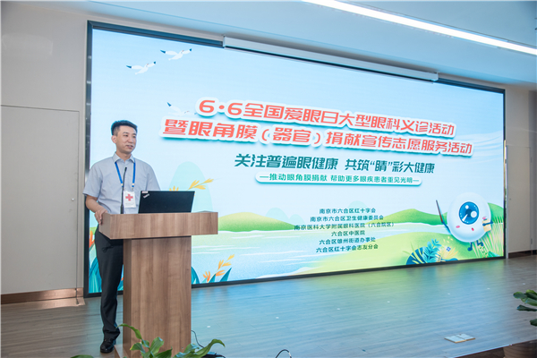 2022年6月6日,是第27个全国“爱眼日”, 今年爱眼日的主题是:关注普遍眼健康,共筑“睛”彩大健康。6月6日上午,由六合区红十字会、区卫健委、南京医科大学附属眼科医院六合院区、区中医院、雄州街道、区红十字会志友分会联合组织的,6·6爱眼日眼角膜捐献宣传活动及大型眼科义诊,在南京医科大学眼科医院六合院区举行,市红十字会捐献服务部部长刘文华、区卫健委副主任周成林莅临现场参加活动,区红十字会常务副会长张弛为“六合区红十字眼角膜捐献志愿服务队”授旗,眼科医院党总支书记、六合院区院长姚进、副院长徐向忠及医院红十字会眼角膜捐献协调员、博爱光明行志愿者参加了宣传和义诊活动,六合区中医院专家参加了联合义诊活动。 区红十字会常务副会长张弛