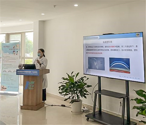 7月23日,南京医科大学眼科医院六合院区,为了预防近视,科普眼科知识,医院举办了爱眼系列宣传活动之:“小眼医”体验活动,第一期《儿童青少年近视防控科普宣讲》。有50多名小朋友及家长参加,通过小朋友体验当眼科小医生,医生宣讲,医生与“小眼医”互动,参观活动,让小朋友和家长在活动中了解了眼科知识,增强了爱眼护眼意识,小朋友参与度高,活动得了家长的高度认同。