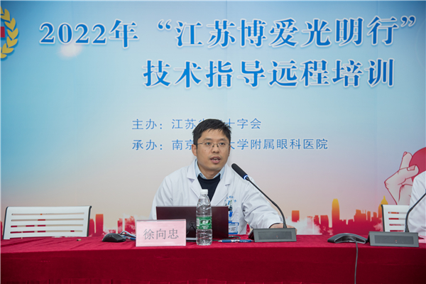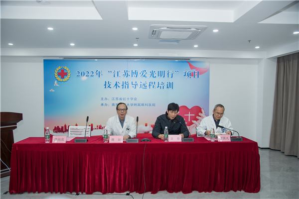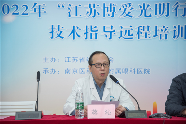 蒋院长:2021年,在省红十字会的关心和指导下,医院成为江苏博爱光明行项目技术指导单位,协助省红会完成了项目标准化流程和医疗质控体系制定。此次会议的召开,通过标准化培训,进一步强化医疗质量体系和服务体系建设,坚持公益服务导向不能偏,医疗质量不能降、医疗安全不松,把公益事业做到尽善尽美。