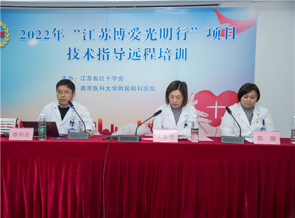 眼科医院蒋沁院长在致辞中说:"博爱光明行"项目自2016年启动以来,在省红会的关心指导下,一直聚焦贫困白内障人群,关注特殊困难群体,为低收入白内障患者实施手术救治、提供适当公益补助,精准帮扶,进一步提高了经济贫困地区白内障患者的获得感、幸福感、安全感,取得了很好社会效益。省红十字眼科医院(南京医科大学眼科医院),作为最早开展“博爱光明行”项目医院,建立了以眼科医生、眼视光专业学生为主体的“博爱光明行”志愿者服务队,以眼科专家为主的“光明博士志愿者服务队”,在义诊筛查、手术复明发挥了中坚作用。2020年,“江苏博爱光明”项目志愿者服务,被评为全国学雷锋志愿服务“四个100”最佳服务项目。