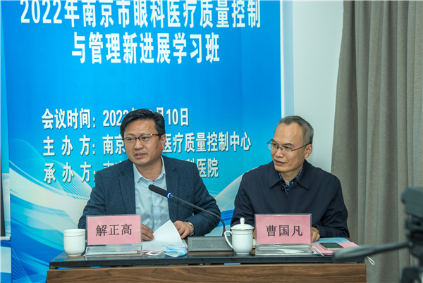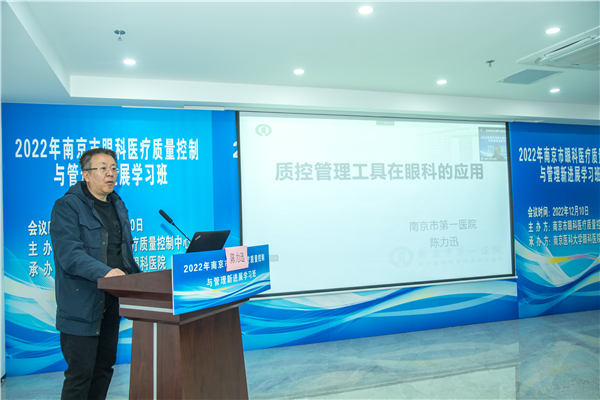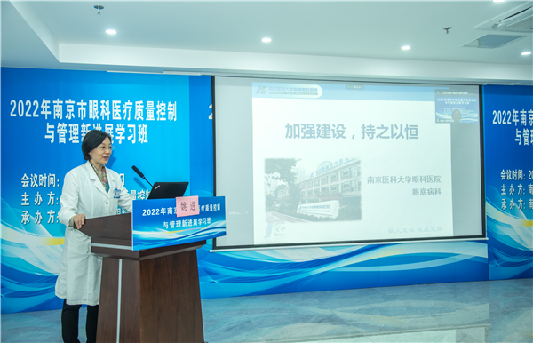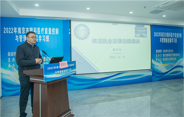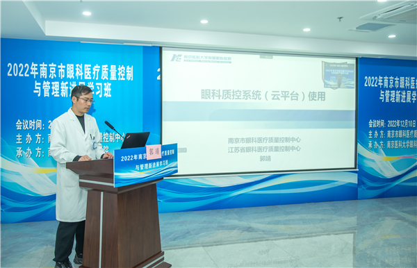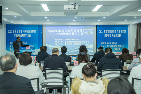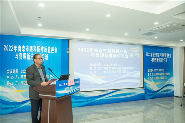 市卫健委医政医管处处长、市医疗质量控制管理办公室主任魏强到会讲话,市眼科质控中心主任蒋沁教授致辞并做了“眼科质控指标(2023 年版)解读”授课,南京市卫生监督所副所长翁加付、南京市医保局服务处薛虹处长临会,并分别讲授“依法执业”、“南京市眼科DRGS管理”。市眼科医疗质量控制中心副主任王林农、解正高、陈力迅、童梅玲、秘书曹国凡、郭靖,省眼科质控中心委员陈力迅及市中心质控委员、市属医疗机构的眼科负责人、眼科质控员参加了培训会议。