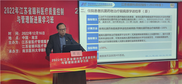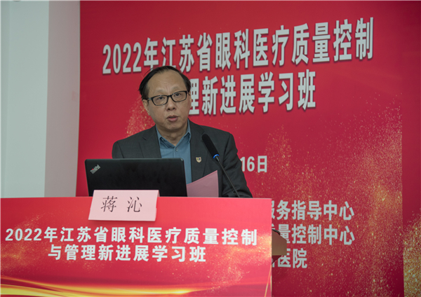 省眼科医疗质量控制中心主任蒋沁教授,汇报了眼科质控中心的工作,对江苏省眼科质控指标(2023年版)进行了解读,对质控中心工作进行了部署,对进一步强化全省眼科质控工作提出了要求。