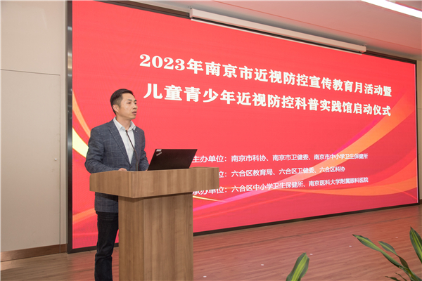 区教育局副局长陈传贵在致辞中说,今天近视防控科普实践馆开馆,标志着六合区儿童青少年近视防控有了一个宣传教育阵地。他希望科普馆开馆后,不断完善提高,充分发挥功能,面向六合乃至全市,面向儿童青少年,以科学的知识、智能的方式、丰富的体验、开放的姿态,吸引更多的青少年和儿童到科普馆来参观体验。
