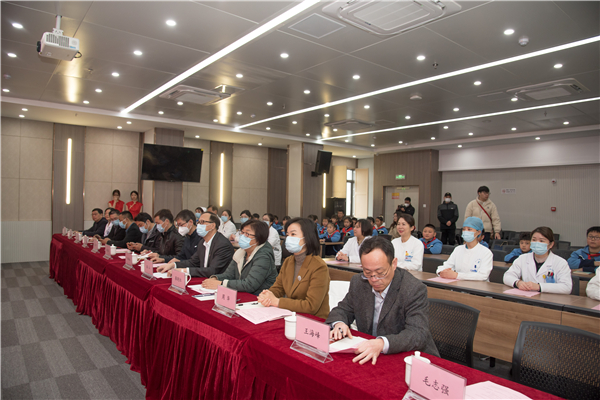 出席开馆仪式的领导有,南京市科协科普部部长张天宝、市卫健委疾控处副处长汪振诚、市中小学卫生保健所副所长吴琼、市科协三级调研员崔晓红、六合区卫健委副主任周华、区教育局副局长陈传贵、区科协副主席王海峰、区中小学卫生保健所所长耿克金、眼科医院院长蒋沁、医院党总支书记、副院长(六合院区院长)姚进、副院长于志平、眼科医院六合院区副院长徐宽怀。开馆仪式由区中小学卫生保健所副所长毛志强主持。