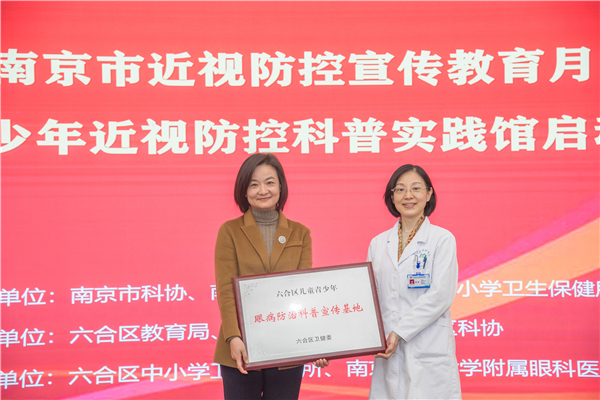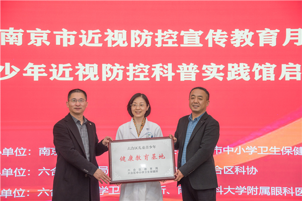 颁发“六合区儿童青少年眼病防治科普宣传基地”铜牌