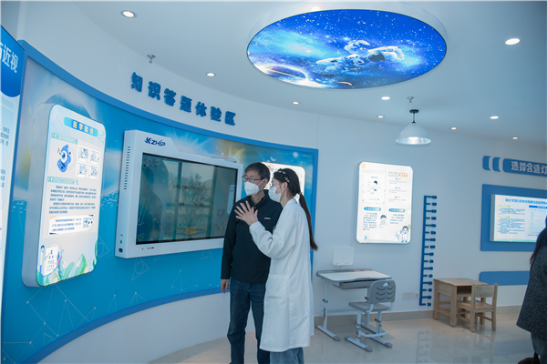介绍了矫正近视与控制近视的科学方法,可以现场体验检查视力、检测眼轴、角膜地形图等,了解框架眼镜、角膜塑形镜、周边离焦眼镜等近视矫正控制功能及验配流程,加深对近视防控知识的认知。