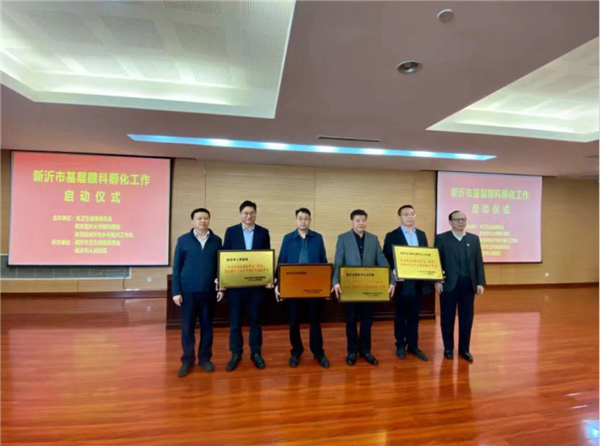 启动仪式上,汤苏川副处长与蒋沁院长为新沂市人民医院、市中医医院、新安中心卫生院、马陵山镇中心卫生院,首批“江苏省基层特色科室(眼科)省级孵化中心基层孵化单位”授牌。