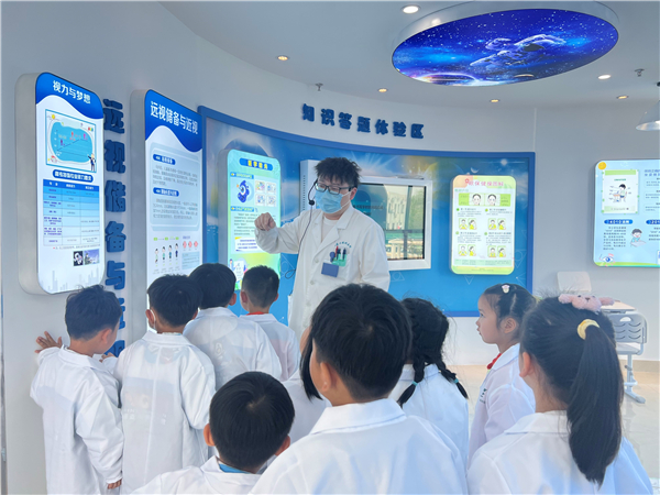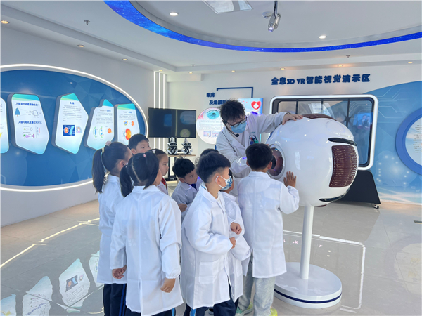 他们还被馆内的全息影像和VR 3D立体眼结构演示所吸引,不时发出惊奇的叫声……总之,从孩子们的眼神中,他们对馆内每一件有关眼科和近视防控方面的科普展示物件、设备,都充满好奇和充满探索的期望。