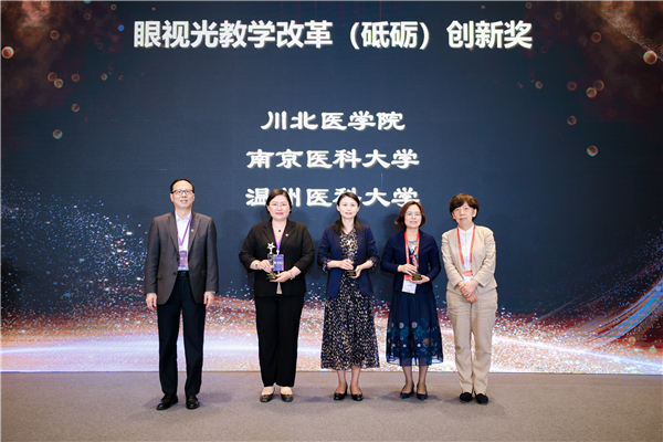 5月17日,在北京举行的教育部高等学校眼视光医学专业教学指导分委会工作会议上,南京医科大学获得“眼视光一流专业突破奖”、“眼视光一流课程(突出)贡献奖”、“眼视光教学改革(砥砺)创新奖”三个奖项。同时,在全国儿童青少年近视防控宣讲团工作中,南京医科大学大学生近视防控宣讲团获得了2021-2022优秀大学生宣讲团表彰。会上,眼视光学系主任蒋沁教授作了《南京医科大学眼视光青年教师能力培养实践》专题汇报,李柯然副教授专题汇报《眼视光器械学》课程指南。