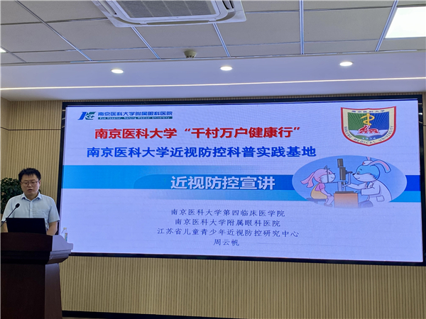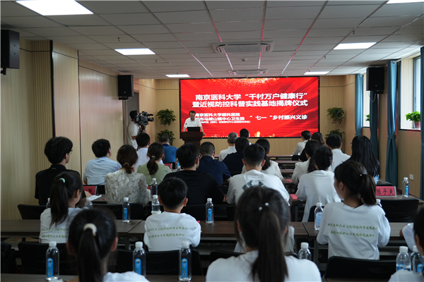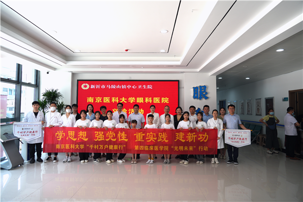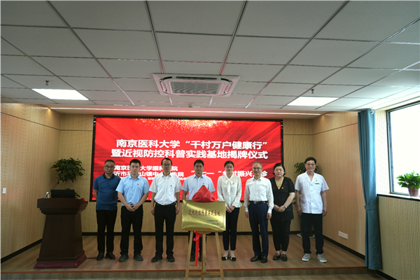 在中国共产党成立102周年之际,7月1日上午,南京医科大学眼科医院党员干部、入党积极分子和党外人士,在南京医科大学第四临床医学院党委书记陆铭,附属眼科医院副院长曹国凡、党总支副书记商卫红带领下,来到新沂市马陵山镇,开展“千村万户健康行---光明未来” 主题教育专项行动,期间举行了“南京医科大学近视防控科普实践基地揭牌仪式”,开展了眼科义诊、专家讲座,对马陵山镇中心卫生院进行了技术指导和帮扶。新沂市委常委、副市长、江苏省委驻新沂市乡村振兴工作队队长陈刚,市委常委、副市长赵慧慧等出席相关活动。